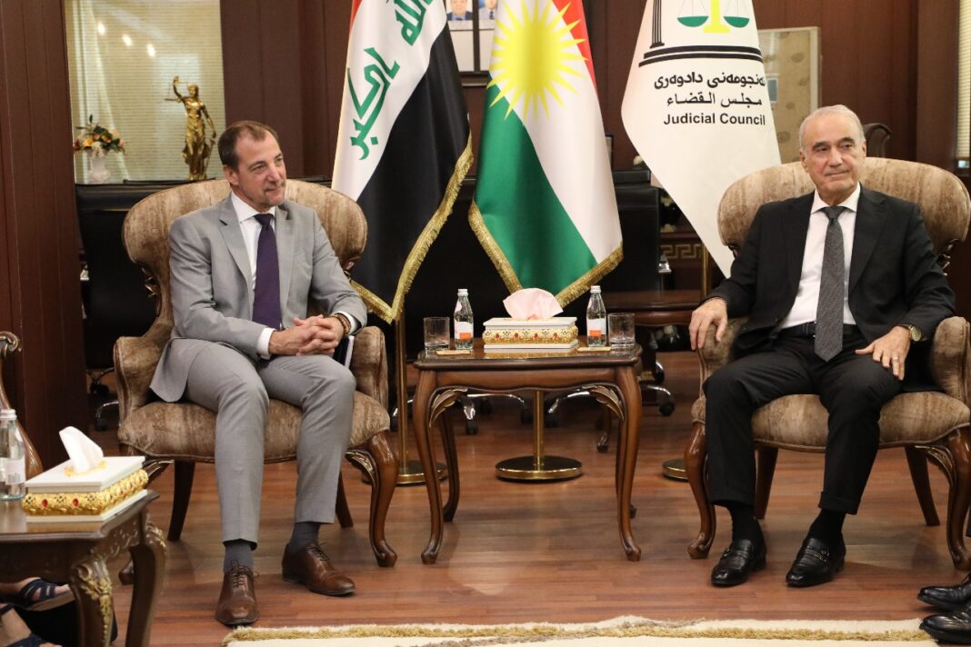 کونسوڵی فهرهنسا لە پێناو ڕێگرتن لە کۆچی نایاسایی و کاری قاچاخچییەکان لەگەڵ سەرۆکی ئەنجومەنی دادوەریی هەرێمی کوردستان دەکات.