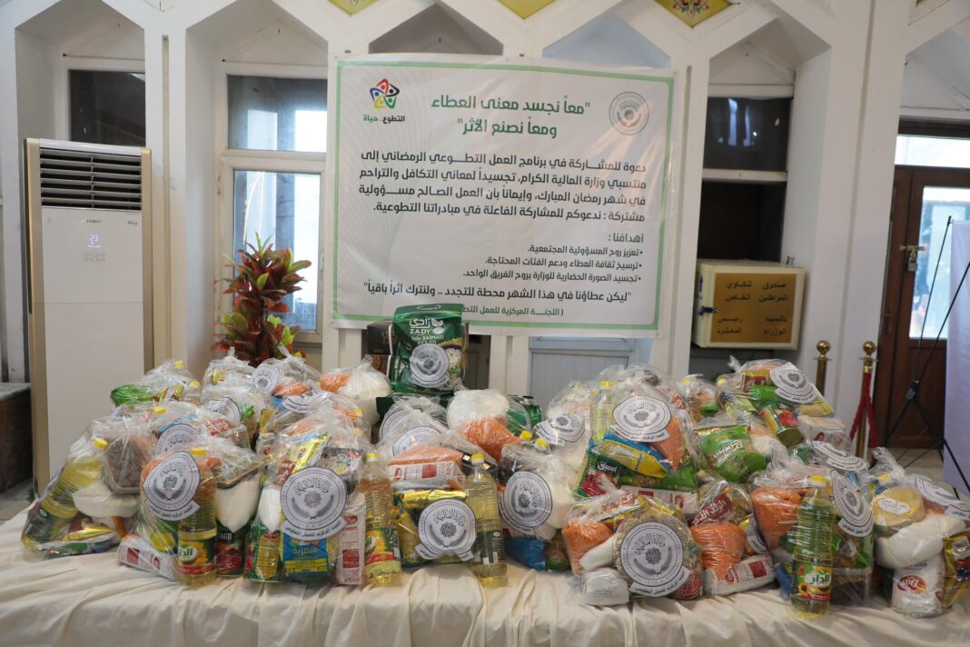 بەسەرپەرشتی تەیف سامی، وەزیری دارایی عێراق، لیژنەی کاری خۆبەخشی لە وەزارەتی دارایی دەستپێشخەریی دابەشکردنی سەبەتەی خۆراک بۆ خێزانە کەمدەرامەتەکان بەبۆنەی مانگی ڕەمەزانەوە ڕادەگەیەنێت.