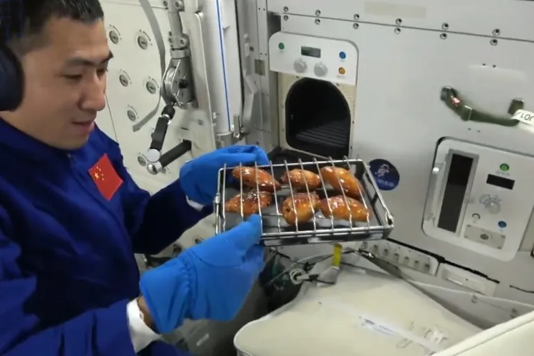لە ڕووداوێکی بێوێنە لە مێژووی گەشتەکانی بۆشایی ئاسماندا، گەشتیارانی بۆشایی ئاسمانی چینی توانییان یەکەم “ئاهەنگی برژاندن- شیش کەباب” لە بۆشایی ئاسماندا ئەنجام بدەن لەسەر وێستگەی بۆشایی ئاسمانی چین.