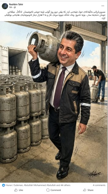 مسروربارزانی بەڵێنەکەی خوێ جێبەجی کرد ،کە پێش دوو ڕوژ گوتی ئێمە خوشی ناخوشیمان لەگەڵ میللەتی خومان دەبەینە سەر ، بۆیە ئەمڕۆ وەک خەڵک چووە سڕەی غاز و بە٦٠هەزار دینار لەوموچەیەی هەیەتی بوتڵێکی کڕی
